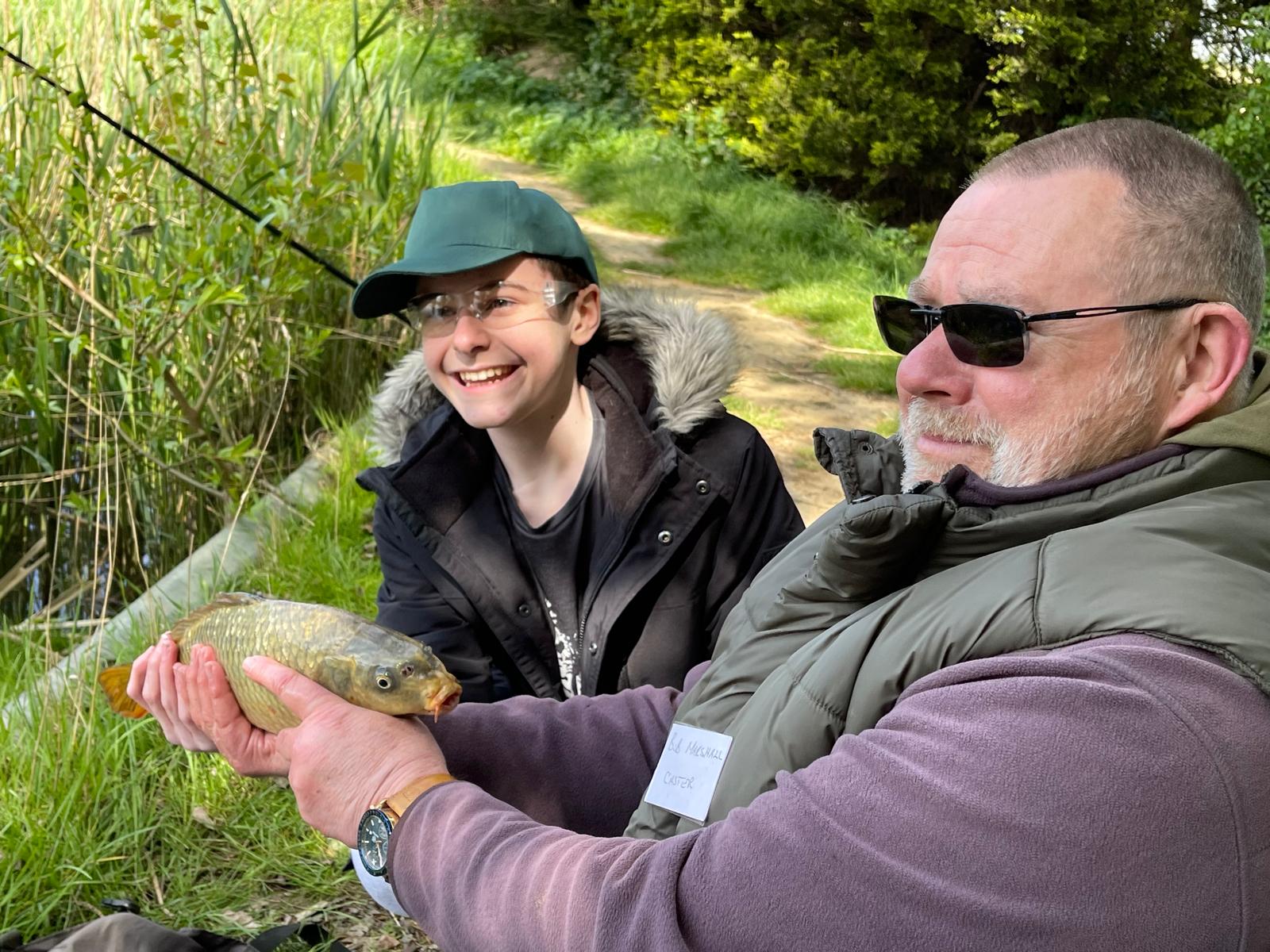 From the start, everyone was catching fish, with small silver fish and bigger Carp, around 2-3lb, putting up a good scrap for the lucky ones. There were lots of squeals of excitement to be heard around the lake with Students letting their fellow Anglers know how well they were doing! Their sounds were interspersed with Woodpeckers, Cuckoos, Wood Pigeons and from the smallest bird the loudest song of a Wren!!