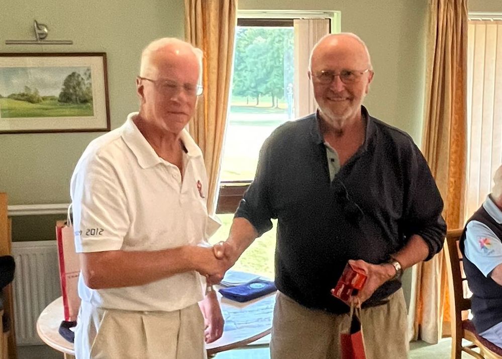 The Sureken Silver Salver competition was more tightly contested. Whilst Captain Chris Metherell & Keith Hodgson were comfortably ahead in the first game, Vice-Captain Roy Butler and Paul McGuirk were two down after 7 holes. Managing to win the next two holes, they were all square at the turn. They finally managed to sneak ahead on the 13th and were two up after the 14th. The game was closed out on the 16th hole thanks to a magnificent par.