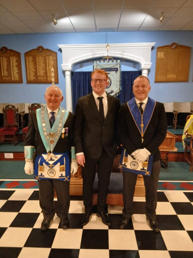Bro Francis pictured in centre with WM Alan Chitty on the left and W. Bro Mark Bailey