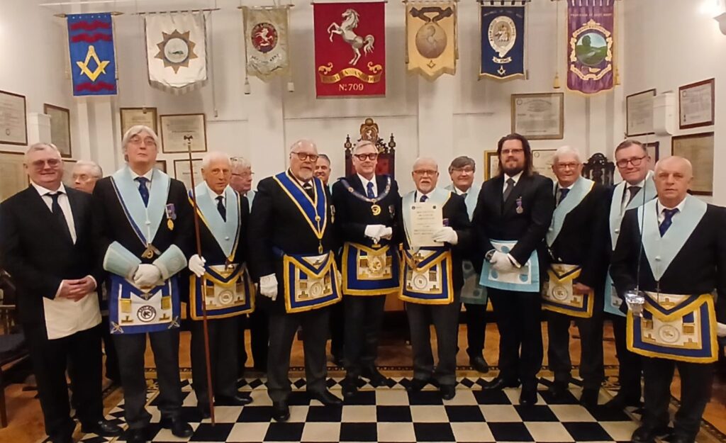 That evening, Trevor conveyed the thanks and best wishes of the PGM before presenting the Lodge’s Platinum Award. Lodge Charity Steward WBro Anton Banham proudly accepted the certificate on behalf of the brethren, recognising an outstanding total of £31,144 raised—an impressive £11,344 over the Lodge’s target. A remarkable achievement for such a small Lodge.