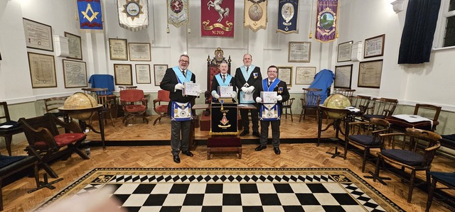 The evening began with members who had missed the earlier Installation ceremony being formally invested into their offices, followed by an address to the Wardens and brethren.